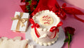 1.5 kg. A classic white cake with a ribbon of love, enhanced by roses for an unforgettable Valentine’s moment.