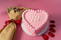 1.5 kg . A soft pink heart cake with a gentle touch of romance, beautifully paired with roses to express sweet love.